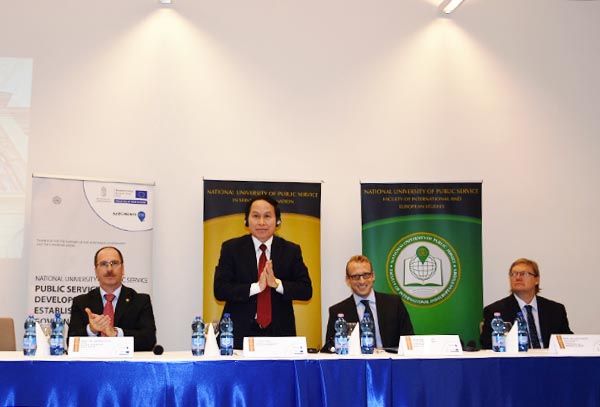 Để cụ thể hóa hoạt động hợp tác trong lĩnh vực đào tạo luật giữa hai nước, Thứ trưởng Bộ Tư pháp, Hiệu trưởng Trường Đại học Luật Hà Nội Lê Tiến Châu cũng đã có bài phát biểu khai mạc quan trọng tại buổi Hội thảo Hợp tác trong lĩnh vực đầu tư Việt Nam - Hungary: Các thách thức về pháp luật, hành chính và chính sách tại Trường Đại học Hành chính công Quốc gia. Buổi hội thảo được tổ chức trên cơ sở đề xuất của 4 trường đại học: 02 trường của Hungary là Trường Đại học Hành chính công Quốc gia (đơn vị chủ trì), Trường Đại học Szeged; 02 trường của Việt Nam là Đại học Quốc gia Hà Nội, Trường Đại học Luật Hà Nội.