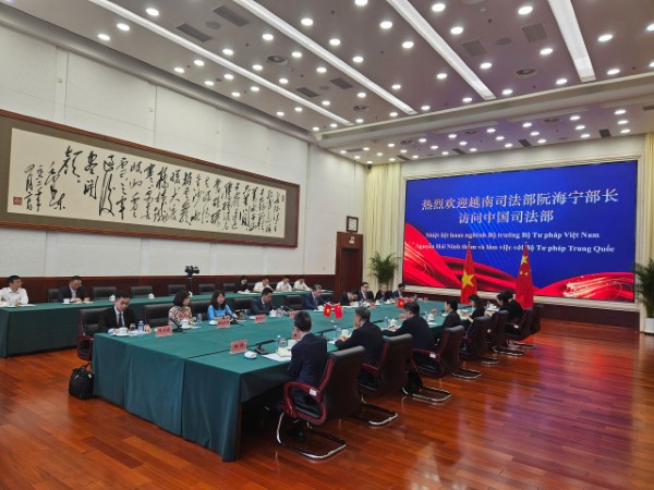 Về hợp tác song phương giữa hai Bộ Tư pháp, quan hệ hợp tác được bắt đầu triển khai trên cơ sở Nghị định thư hợp tác giữa Bộ Tư pháp hai nước ký năm 1997. Tuy nhiên, các hoạt động triển khai còn khá khiêm tốn, phải đến năm 2022, khi hai Bộ Tư pháp ký Bản ghi nhớ hợp tác nhân chuyến thăm chính thức Trung Quốc của Tổng Bí thư Nguyễn Phú Trọng, hợp tác giữa hai Bộ mới được thúc đẩy một cách mạnh mẽ với điểm nhấn là chuyến thăm Việt Nam của Bộ trưởng Tư pháp Trung Quốc Hạ Vinh trong năm 2024. Đồng thời, hai Bộ thường xuyên tổ chức các hội nghị trực tuyến để chia sẻ kinh nghiệm trong lĩnh vực chuyên môn.
