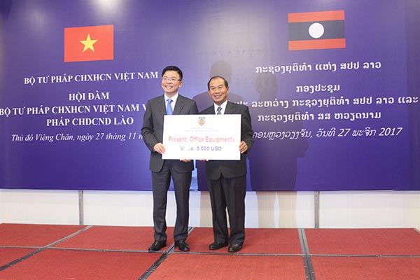 Cũng trong sáng cùng ngày, đại diện hai Bộ Tư pháp đã ký kết Chương trình hợp tác năm 2018 giữa hai Bộ Tư pháp. Bộ Tư pháp Việt Nam cũng đã trao tặng một số trang thiết bị và một phần quà cho Bộ Tư pháp Lào.