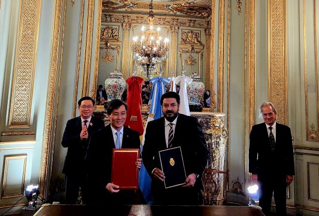 Cũng trong ngày 25/4/2023, tại trụ sở Bộ Ngoại giao Argentina, trước sự chứng kiến của Chủ tịch Quốc hội Vương Đình Huệ, Thứ trưởng Nguyễn Khánh Ngọc và Thứ trưởng Bộ Tư pháp Bạn Juan Marin Mena đã tiến hành trao đổi “Bản Ghi nhớ giữa Bộ Tư pháp CHXHCN Việt Nam và Bộ Tư pháp và Nhân quyền Cộng hòa Argentina trong lĩnh vực pháp luật” do Bộ trưởng Tư pháp hai nước đã ký (thay thế MOU đã ký năm 1998). Mục tiêu của Bản Ghi nhớ hợp tác này là thúc đẩy quan hệ hợp tác trong lĩnh vực pháp luật thuộc thẩm quyền của mỗi Bên. Nội dung hợp tác tập trung vào (i) Trao đổi kinh nghiệm về cải cách tư pháp, xây dựng và thi hành pháp luật; (ii) Trao đổi kinh nghiệm về chuyển đổi số trong lĩnh vực pháp luật và tư pháp; (iii) Chia sẻ kinh nghiệm về tham gia các điều ước quốc tế liên quan đến chức năng, nhiệm vụ của mỗi Bên. Hình thức hợp tác được quy định đa dạng, bao gồm (i) Trao đổi chuyên gia pháp luật, cán bộ và đoàn công tác của các Bên; (ii) Phối hợp tổ chức và tham gia các hội nghị, hội thảo, tọa đàm khoa học và các khóa đào tạo; (iii) Trao đổi các tài liệu, tạp chí pháp luật, ấn phẩm và nghiên cứu liên quan nhiệm vụ của các Bên...Có thể nói việc ký Bản Ghi nhớ hợp tác giữa hai Bộ Tư pháp Việt Nam và Argentina nhân dịp chuyến thăm Argentina của Chủ tịch Quốc hội Vương Đình Huệ lần này đã mở ra một chặng đường mới cho quan hệ hợp tác về pháp luật và tư pháp giữa hai nước, tạo cơ sở pháp lý thúc đẩy hợp tác song phương trong các lĩnh vực khác, góp phần tích cực vào củng cố Quan hệ Đối tác toàn diện Việt Nam – Argentina ngày càng đi vào chiều sâu, thiết thực và hiệu quả.