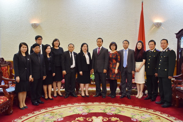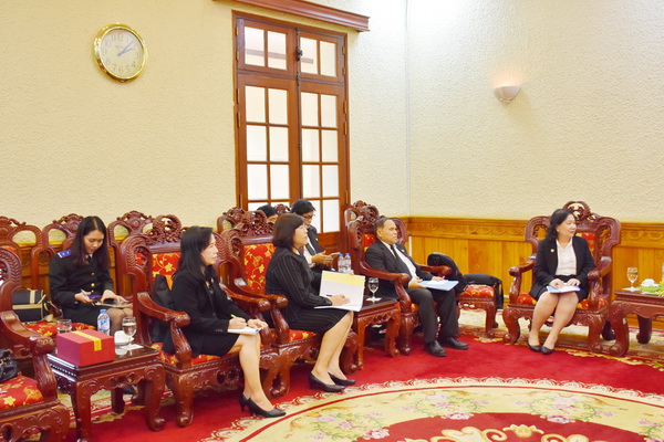 Chiều 20/12, Thứ trưởng Trần Tiến Dũng tiếp xã giao đoàn đại biểu Cục Thực thi pháp luật, Bộ Tư pháp Vương quốc Thái Lan do bà Sasivimol Tanasarnt – Phó Cục trưởng dẫn đầu nhân dịp đoàn công tác sang thăm và làm việc tại Việt Nam.