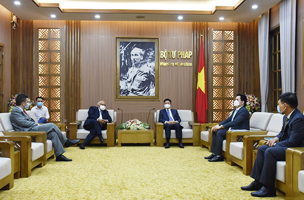Bộ trưởng nhấn mạnh trong suốt thời gian qua, quan hệ hợp tác giữa hai Bộ Tư pháp ngày càng được tăng cường và củng cố. Một số văn kiện hợp tác giữa hai Bộ Tư pháp đã được ký kết và triển khai thực hiện: Bản ghi nhớ hợp tác giữa hai Bộ đã được ký vào tháng 12/2013; Chương trình hợp tác giai đoạn 2018-2019; Chương trình hợp tác giai đoạn 2020-2021 cũng đã được ký và hiện tại hai Bộ đang tổ chức thực hiện.