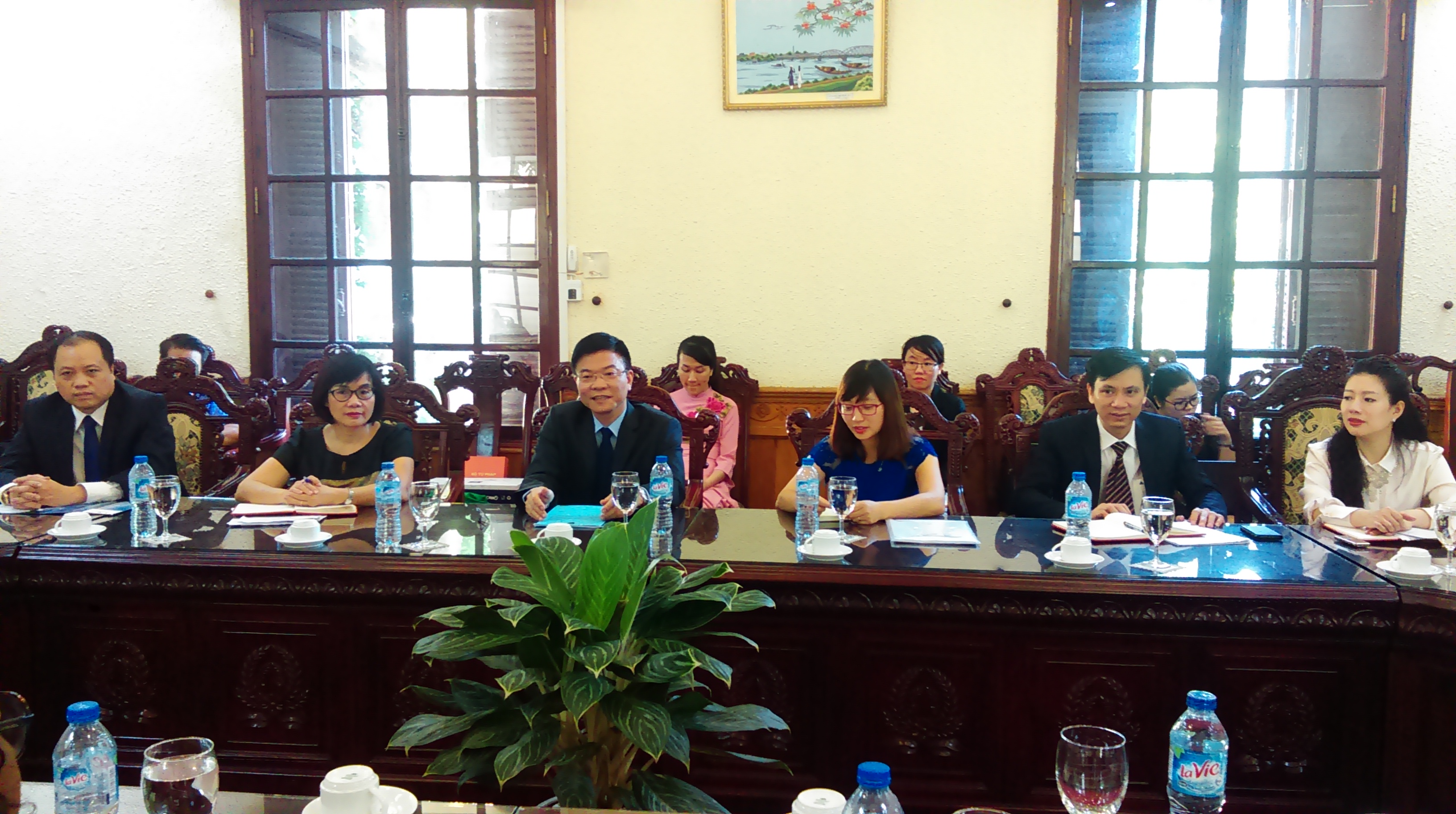 Tại buổi làm việc, Bộ trưởng Lê Thành Long đã giới thiệu sơ bộ về chức năng, nhiệm vụ và vai trò của ngành Tư pháp trong tiến trình cải cách pháp luật và tư pháp ở Việt Nam và những nhiệm vụ trọng tâm mà Chính phủ Việt Nam giao cho Bộ Tư pháp trong thời gian tới. Theo Nghị định vừa được Chính phủ ban hành ngày 16/8/2017 – Nghị định số 96/2017/NĐ-CP quy định chức năng, nhiệm vụ, quyền hạn và cơ cấu tổ chức của Bộ Tư pháp, “Bộ Tư pháp là cơ quan của Chính phủ, thực hiện chức năng quản lý nhà nước về: xây dựng và thi hành pháp luật, kiểm tra văn bản quy phạm pháp luật, phổ biến, giáo dục pháp luật, thi hành án dân sự, thi hành án hành chính, bổ trợ tư pháp, hành chính tư pháp, bồi thường nhà nước; quản lý công tác thi hành pháp luật về xử lý vi phạm hành chính; quản lý nhà nước các dịch vụ sự nghiệp công trong các lĩnh vực thuộc phạm vi quản lý nhà nước của Bộ”.